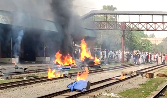 ব্রাহ্মণবাড়িয়ায় ট্রেনে হামলা: ঢাকা-চট্টগ্রাম-সিলেট-নোয়াখালী ট্রেন চলাচল বন্ধ