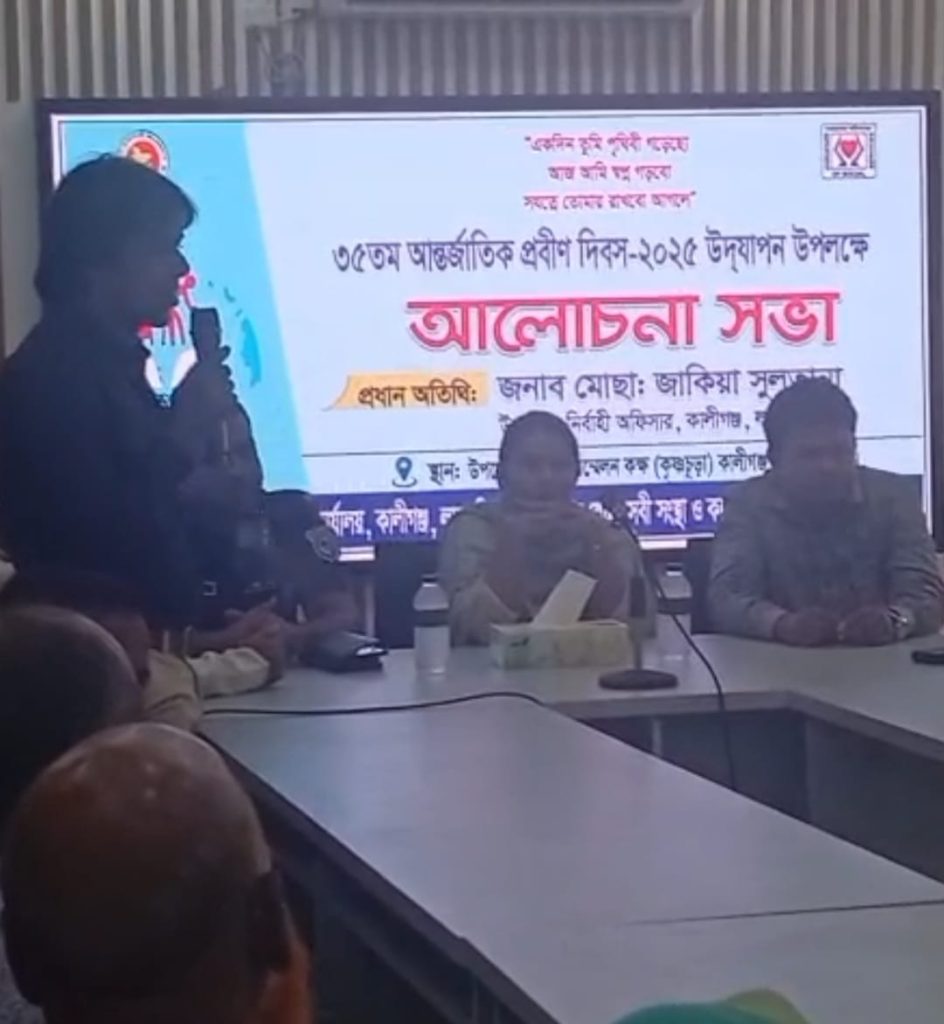 লালমনিহাট জেলার কালীগঞ্জ উপজেলায় ৭ অক্টোবর ২০২৫ মঙ্গলবার সকাল ১০ ঘটিকায় উপজেলা পরিষদ হলরুমে উপজেলা সমাজসেবা অধিদপ্তর ও বেসরকারি নিবন্ধিত সংস্থা সমূহের যৌথ আয়োজন করে । কালীগঞ্জের উপজেলা সমাজসেবা কর্মকর্তা মোঃ জাহাঙ্গীর আলমের সভাপতিত্বে দিবসের তাৎপর্য ও গুরুত্বারোপ করে অন্যান্য মধ্যে বক্তব্য রাখেন প্রধান অতিথি কালীগঞ্জ উপজেলা নির্বাহী কর্মকর্তা মোছাঃ জাকিয়া সুলতানা,বিশেষ অতিথি হিসেবে বক্তব্য রাখেন কালিগঞ্জ থানার অফিসার ইনচার্জ মোঃ জাকির হোসেন, উপজেলা কৃষি কর্মকর্তা তুষার কান্তি মন্ডল, উপজেলা শিক্ষা কর্মকর্তা আবিদা সুলতানা, প্রফিট ফাউন্ডেশন এর নিবার্হী পরিচালক মোঃ নুরুজ্জামান আহমেদ, প্রেসক্লাবের সহ-সভাপতি হাসান আব্দুল মালেক প্রমুখ। আলোচনা সভার পূর্বে একটি রেলী প্রদক্ষিণ করেন। সভায় বিভিন্ন পেশার প্রবীণ ও নবীন ব্যক্তি,সাংবাদিক, বিভিন্ন দপ্তরের সরকারি কর্মকর্তা ও কর্মচারীগন উপস্থিত ছিলেন।