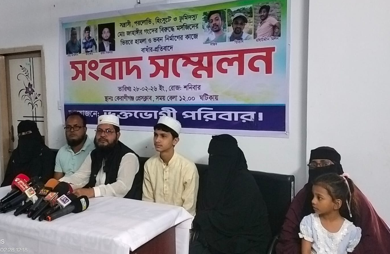 ঢাকার কেরাণীগঞ্জে মসজিদের ভিতরে খতিবের উপর হামলার প্রতিবাদে এক সংবাদ সম্মেলন করেছে এক ভুক্তভোগী পরিবার। গত কাল শনিবার সকালে কেরাণীগঞ্জ প্রেসক্লাবে সংবাদ সম্মেলনে এক লিখিত বক্তব্যে তার পিতা হাজী তাজুল ইসলাম বলেন, কেরানীগঞ্জ মডেল থানাধীন মধ্য খাড়াকান্দি ভেন্ডিঘাট সাকিনে ৩৯ শতাংশ জমি আমার দুই মেয়ে তানজিল ইসলাম ও খাদিজা ইসলামের নামে ক্রয় করে ছিলেন। তাতে দীর্ঘদিন যাবত ভোগদখল করে বিভিন্ন স্থাপনাও আছে। এইমত অবস্থায় একটি কুচুক্তি মহল, সন্ত্রাসী, পরলোভি,হিংসুটে, ভূমদস্যু প্যানেল চেয়ারম্যান আউয়াল মেম্বার এর নির্দেশে ১। মোঃ জাহাঙ্গীর (৩৮), ২। মহিউদ্দিন মিলন ৩। তিতাস ৪। আমিনুর ৫। সজিব ৬। হৃদয় সিকদার আরমান ৮। হৃদয়সহ ১০/১২ জনের গত ২০ ফেব্রæয়ারি শুক্রবার সকালে আমার মেয়েদের উক্ত ভিটি ভূমিতে প্রবেশ করিয়া ভবন নির্মাণের কাজে বাধা সুষ্টি করে। এই খবর পেয়ে আমি ঘটনা স্থলে চলে আসি। বাধাকারীদের না পেয়ে,পাশে থাকা খাদিজাতুল কোবরা জামে মসজিদে জুম্মা নামাজ আদায় করি। সুন্নত নামাজের সময় উপরোক্ত বিবাদীগণ সহ আরো অজ্ঞাতনামা ১০/১২ জন দেশীয় অস্ত্র সস্ত্র নিয়া মসজিদের ভিতরে প্রবেশ করিয়া আমার ছেলে খতিব রাফিআল ইসলাম (১৬)ড্রাইভার মনির হোসেনসহ আমাকে অকথ্য ভাষায় গালিগালাজ করিয়া এলোপাথারীভাবে কিল, ঘুসি, লাথি মারিয়া শরীরের বিভিন্নস্থানে নীলাফুলা জখম করিয়া রক্তাক্ত করে। এবং বিভিন্ন রকম ভয়ভীতি ও হুমকি প্রদান করে। আক্রমনকারী তিতাস আমার পরিধান কুটির দুপকেটে থেকে আমার মোবাইল , নির্মানাধীন শ্রমিকের মজুরী, রড, সিমেন্ট, ইট ও বালু কেনার বাবদ লক্ষ পঞ্চাশ হাজার টাকা জোড় করে ছিনিয়ে নেয়। এসময় আমার ডাকচিৎকারে আশেপাশের থাকা লোকজন আসিয়া আমাদের আহত অবস্থায় উদ্ধার করে। পরবর্তীতে আমাদের উপজেলা স্বাস্থ্য কমপে¬ক্স হাসপাতালে নিয়ে যায়। সেখানে আমরা প্রাথমিক চিকিৎসা গ্রহন করি। এই ঘটনায় থানায় একটি মামলা দায়ের করি। মামলায় জামিন নিয়ে আসামীগন আমাকে ও আমার পরিবারকে একাধিকবার জানের হুমকি দিয়ে বেড়াইতেছে। তিনি আরো বলেন, আপনাদের লিখনি দ্বারা আমার উপর পরিকল্পিত হামলা ও আমার সন্তাানদের ক্রয়কৃত জমির উপর কুদৃষ্টি,ও আমার জানমাল রক্ষার জন্য সঠিক বিচারের আবেদন করছি।