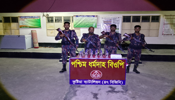 কুষ্টিয়া ব্যাটালিয়ন (৪৭ বিজিবি)সুনির্দিষ্ট গোয়েন্দা তথ্যের ভিত্তিতে এর অধীনস্থ বিভিন্ন বিওপির দায়িত্বপূর্ণ সীমান্ত এলাকায় পৃথক পৃথক অভিযান পরিচালনা করে বিপুল পরিমাণ ভারতীয় চোরাচালান পণ্য উদ্ধার করা হয়েছে। উদ্ধারকৃত পণ্যের মধ্যে রয়েছে ভারতীয় মদ, বিভিন্ন প্রকার ট্যাবলেট, চকলেট বাজি, পাতার বিড়ি ও জিরা।