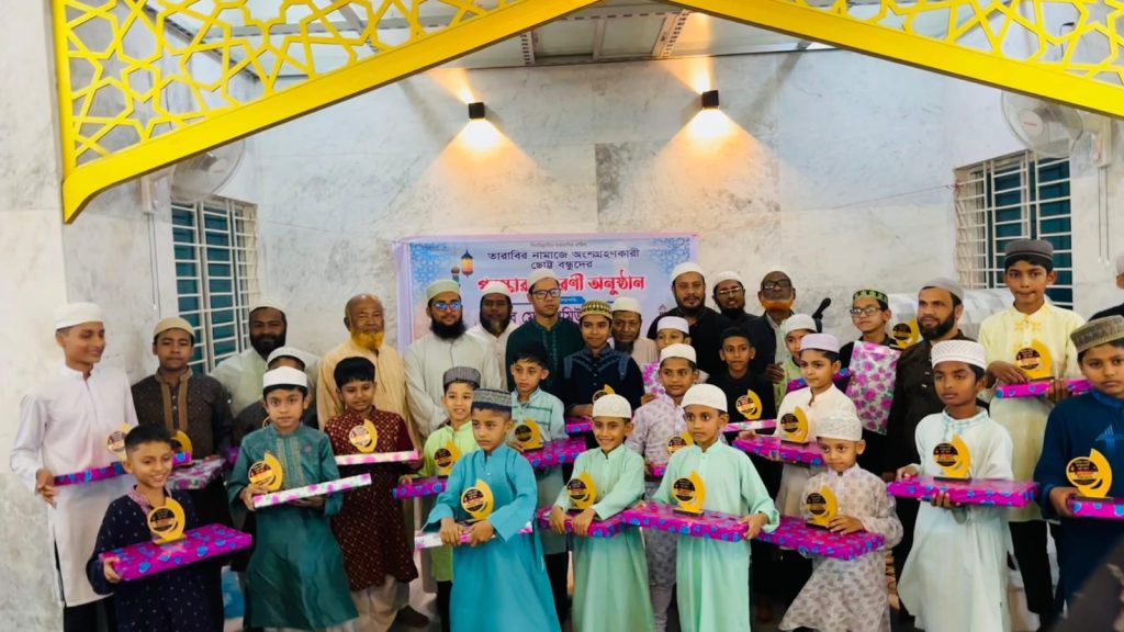 অনুষ্ঠানে তারাবির নামাজে নিয়মিত অংশগ্রহণকারী শিশুদের হাতে পুরস্কার তুলে দেওয়া হয়। আয়োজকরা জানান, ছোটবেলা থেকেই শিশুদের নামাজের প্রতি আগ্রহী করে তুলতেই এ উদ্যোগ নেওয়া হয়েছে।