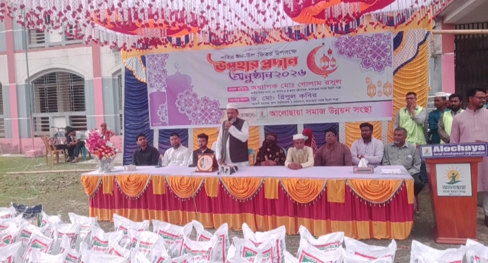 মণিরামপুর উপজেলার ১৬নং নেহালপুর ইউনিয়নের কালীবাড়ি শাহিদা সুলতানা মাধ্যমিক বিদ্যালয়ের মাঠে ১৯ মার্চ বৃহস্পতিবার সকাল ১০ঘটিকার সময় উপজেলার স্বনামধন্য আলোছায়া সমাজ উন্নয়ন সংস্হার উদ্যোগে স্হানীয় দরিদ্র জনগোষ্ঠীর মাঝে ঈদুল ফিতর উপলক্ষে ১৩০ টি পরিবারের মাঝে নিত্যপ্রয়োজনীয় দ্রব্য সামগ্রী বিতরন করেন।দুই দিনে সর্বমোট ২৫০জন দরিদ্র জনগোষ্ঠীর মাঝে সংস্হাটি উপহার সামগ্রী বিতরন করেছেন।